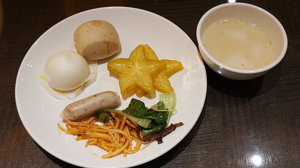 今回4連泊するホテル「グリーンワールド山水閣」(漢字表記は洛碁大飯店山水閣)、朝食付きのエコノミークラスホテルですが、朝食は6時半スタートということで、早朝出発の二日目も三日目も利用することができませんでした、四日目にしてやっとホテルの朝食に。