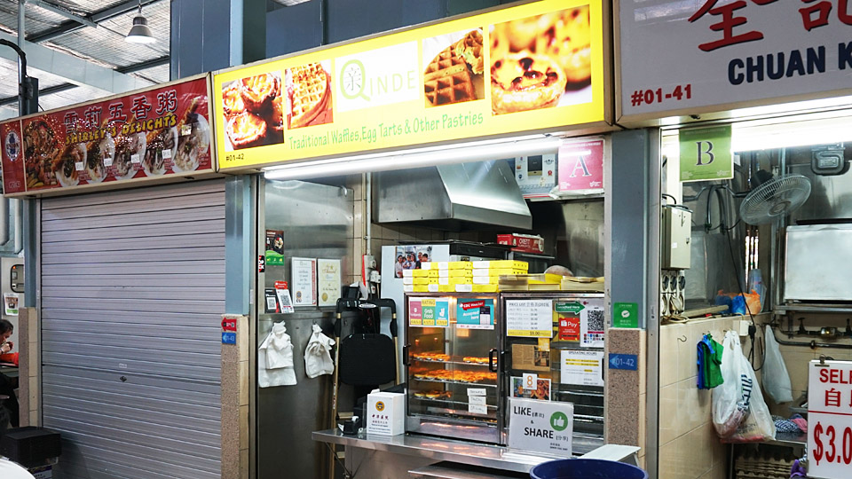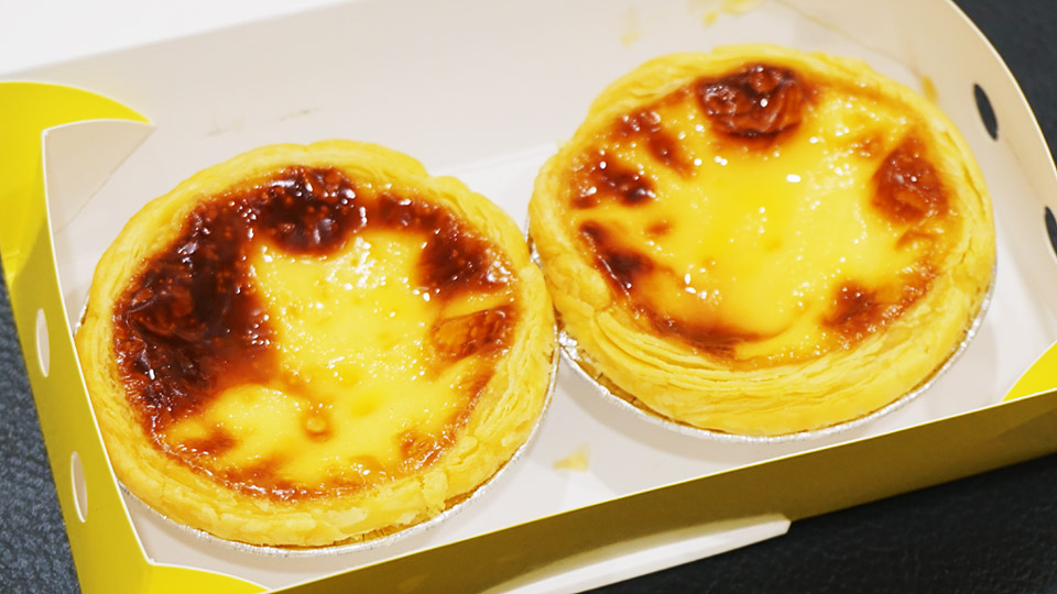 スイーツもテイクアウトで購入します、エッグタルトのお店、立ち寄ったホーカーズの衛生ランクがほぼ「B」の中、ここは「A」評価でした、ここだけだったと思います。