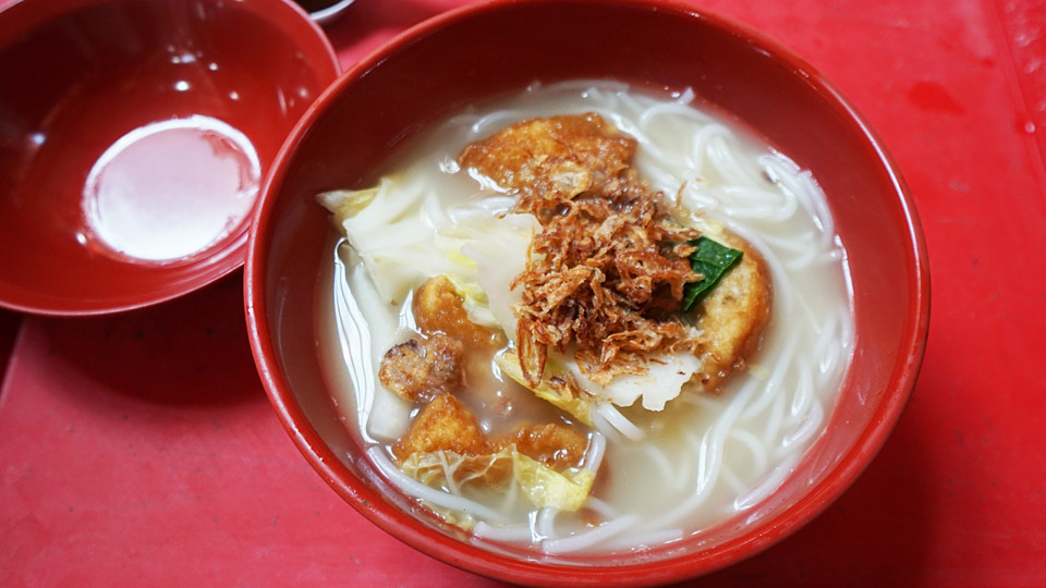 ホーカーズ中央の通路にあった、「金華」というお店のフィッシュヘッドビーフンを注文します。