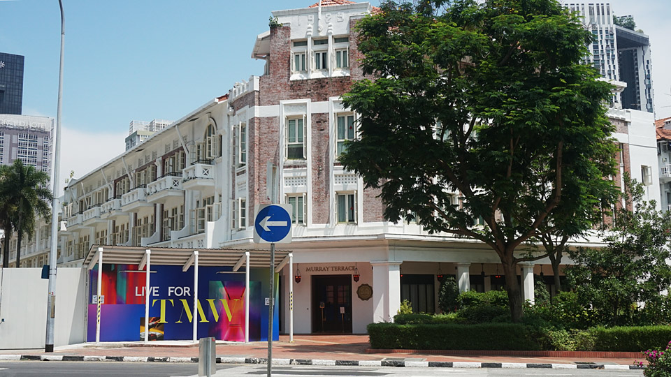 マクスウェル・フードセンターから見る、木陰に隠れたちょっと高級そうな、趣建物のホテルです。
