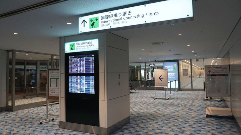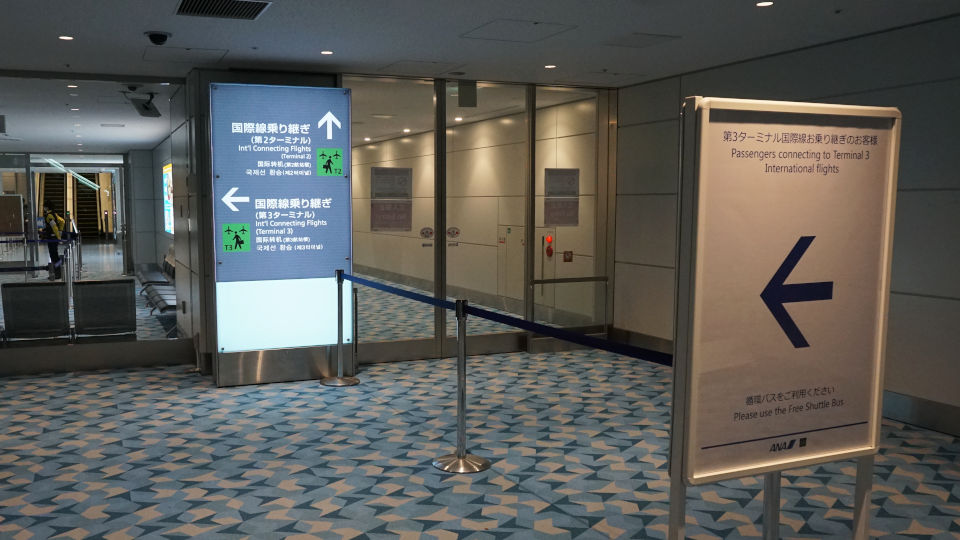 羽田空港第2ターミナルに到着、一応、国際線乗り継ぎのルートを探します。