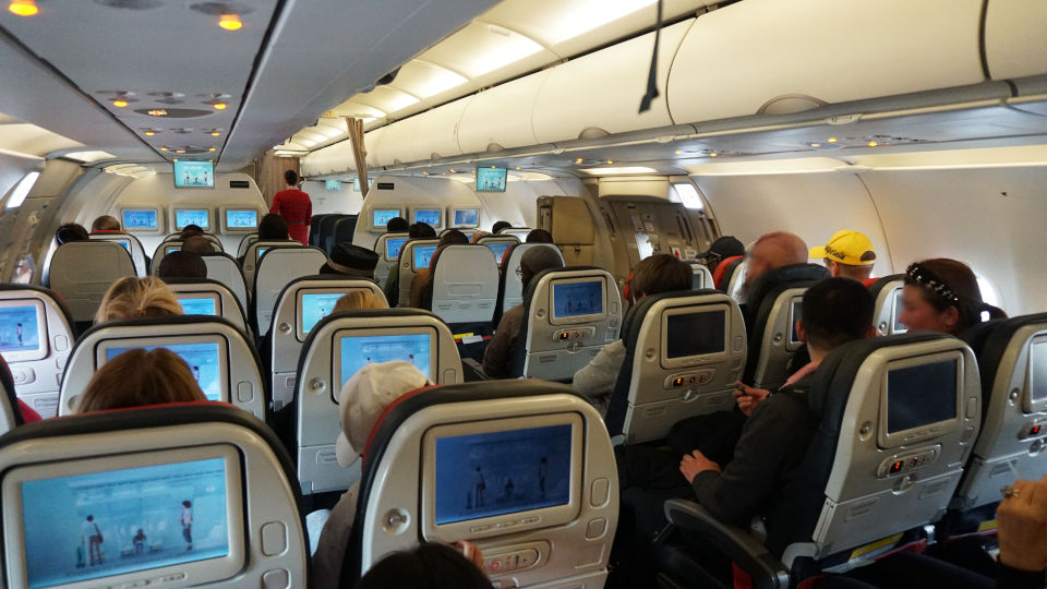 使用機材はA-321、シート配列は3-3、A-330に比較するとやはりこじんまりとした感じですね。