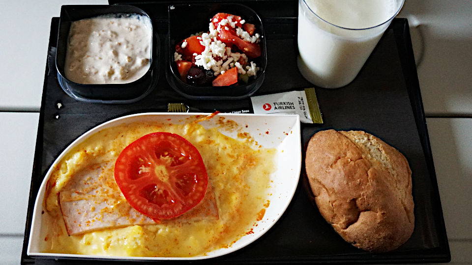 機内食のサービスがあります、メニューはなく配給状態のセット、飲み物はトルコならではのアイランを頼みました、少ししょっぱいトルコの飲むヨーグルト。