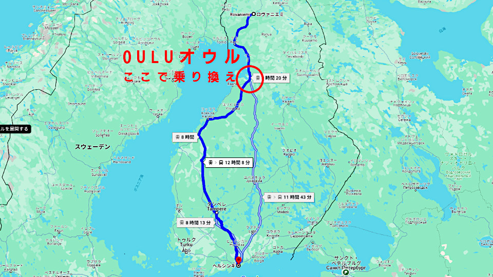 地図で見ると「オウル」はこのあたり。