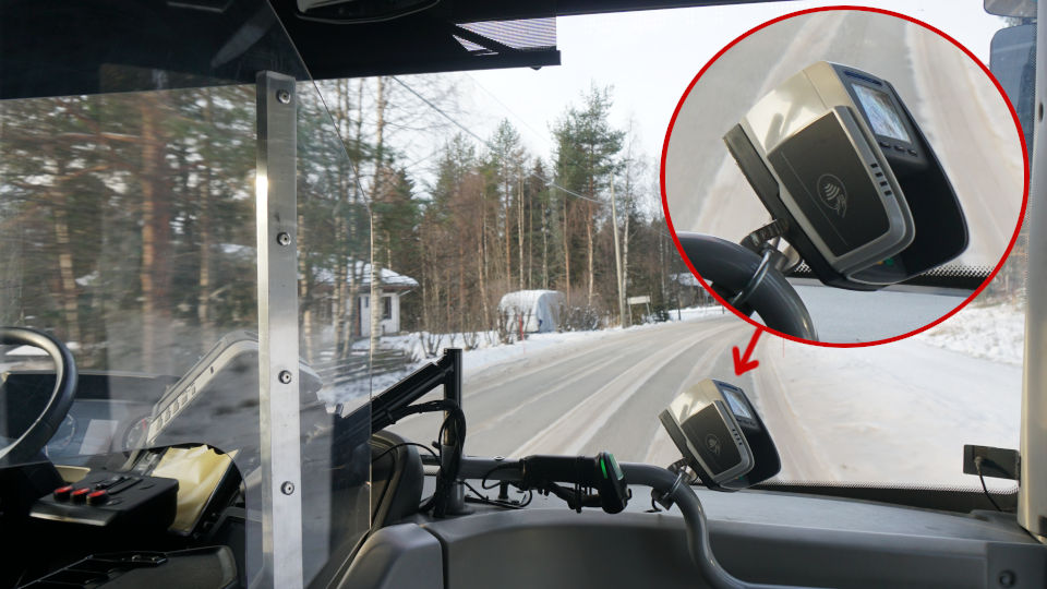 バスが来たのは11時40から45分位でしょうか、チケットはクレジットカード払いが可能で、運転手さんに2名分と伝えて、写真のカードリーダの横側のセンサーにタッチします、これがなかなか便利。