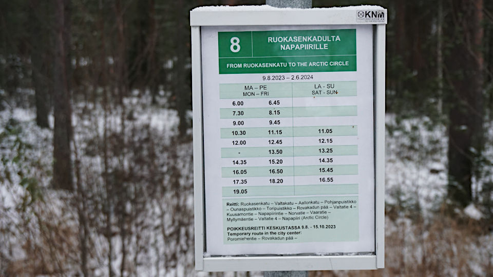 今日はこのあたりでは唯一の観光エリア、本物のサンタがいる「サンタクロース村」へ向かいます、バス停は中心部へ向かうバス停から少し離れた向かい側に。