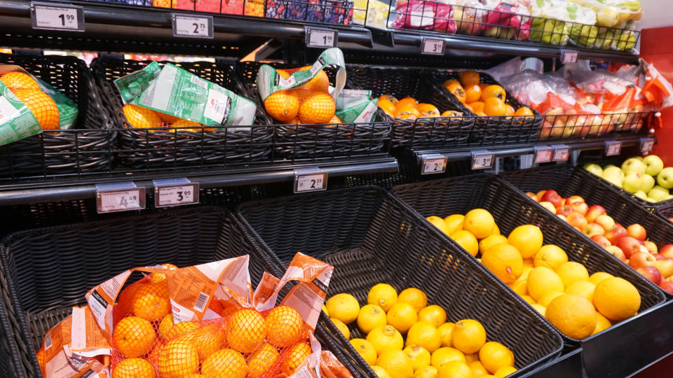 同じく、果物コーナーの陳列棚、果物は量り売りなので1個からでも購入可能。