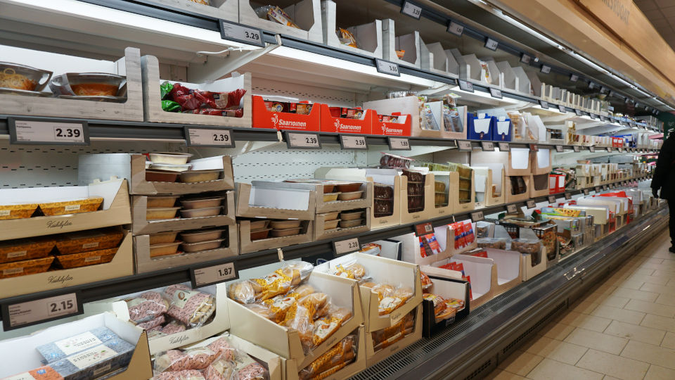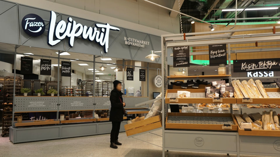 左側「Fazer」ファッツェルのパンブースと、スーパーオリジナルのパンコーナー、とにかく焼き立てパンの種類が多い、全体的に「LiDL」よりお値段は高めの設定です。