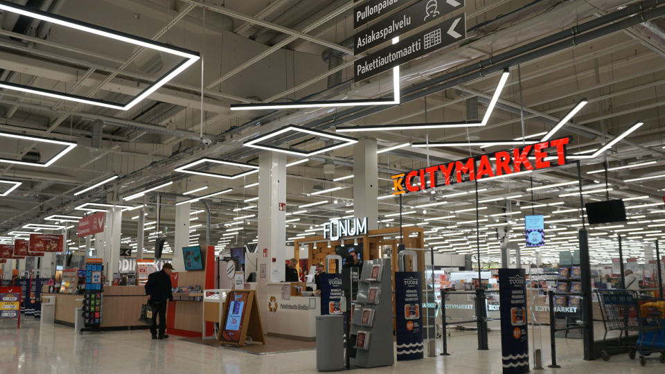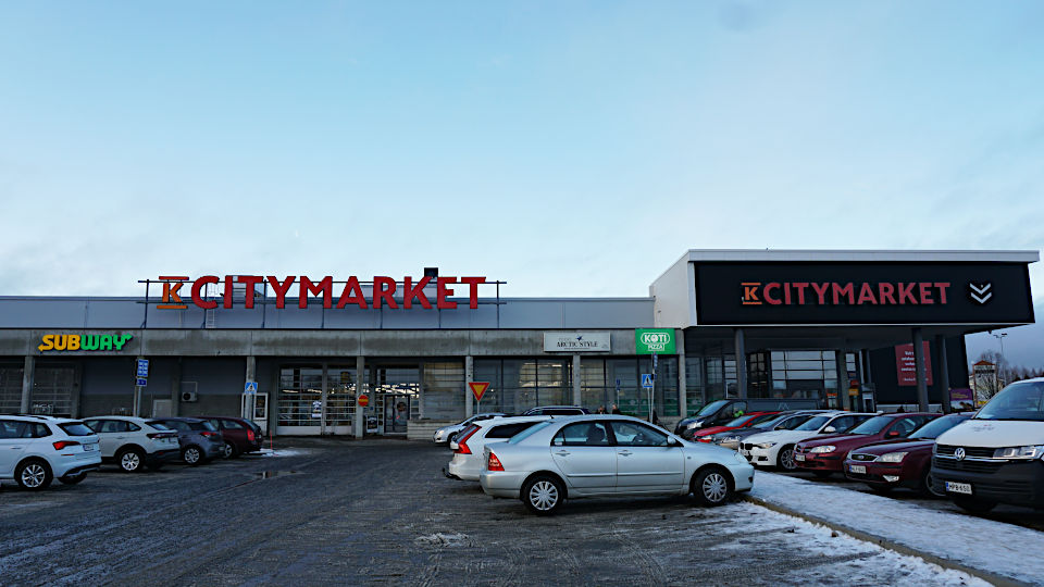 続いて、道路を挟んで西側にある「K-CITYMARKET」へ、こちらは「LiDL」に比べるとかなり大きく、スーパーマーケットというより食品も扱うホームセンターといった感じのお店。