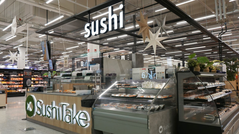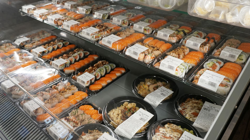 ストッカーに並ぶパック詰めのお寿司、メインはサーモンで、生だったり炙ってあったり、巻物はなかなか美しい仕上がりなっていました、お値段は大きいパックで 17.95 ユーロ、小さいパックは 11.95 ユーロといったところ、高級です。