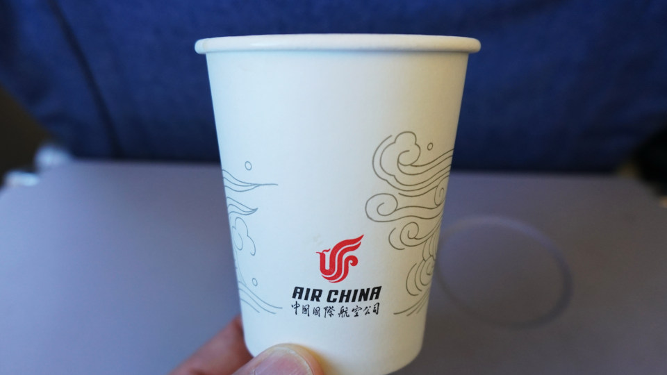 中国国際航空:エアチャイナと言えば話題になる機内食、しばらくすると先ずは飲み物のサービスが始まりました。
