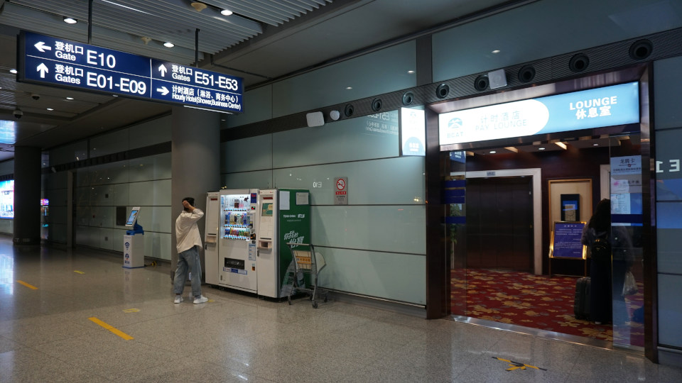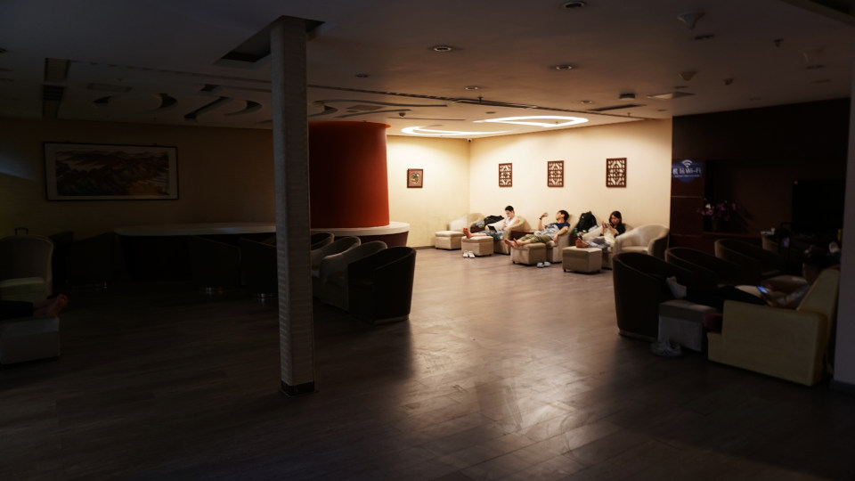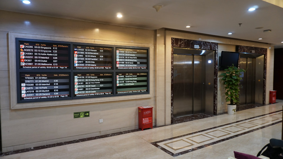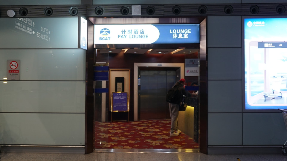 通常の航空会社のラウンジと比べるとあっさりとした入り口表示、入り口を入って右側に受付カウンター、予約した携帯画面も準備しましたが、北京までのチケットと乗り継ぎのチケットを提示するだけで通過できました、奥のエレベーターで上に昇ります。