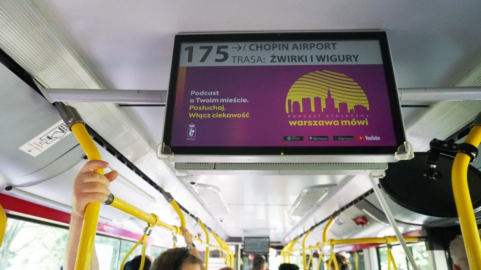 昨日の夜に時刻表を確認に行った「Plac Starynkiewicza 02」バス停から、8時台の175番バスで空港へ、「ワルシャワ・フレデリック・ショパン空港」へ向かいます、バス内のモニター型表示板。