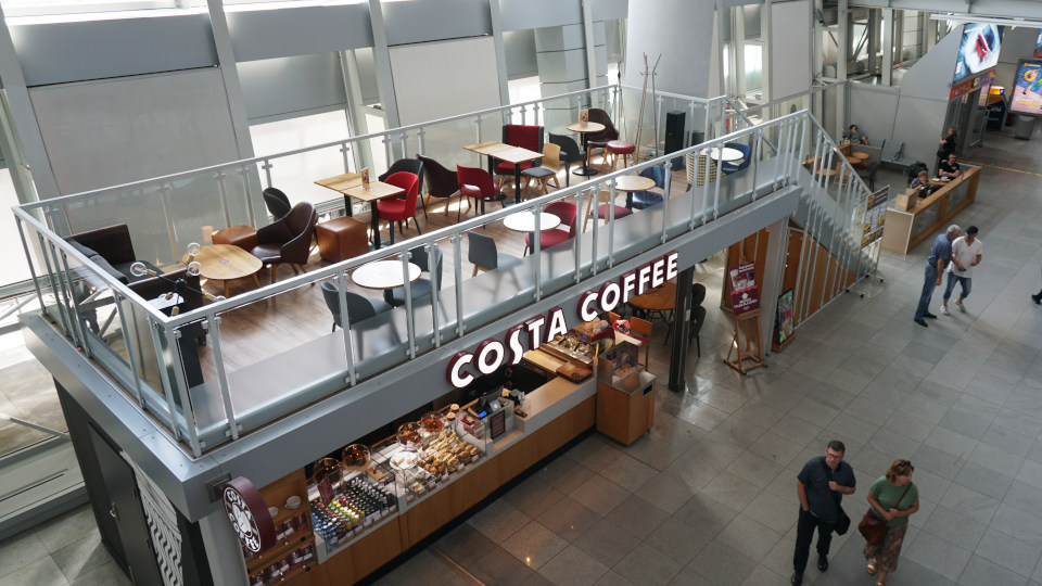 コスタコーヒーは二階にもロフト風なテーブル席。