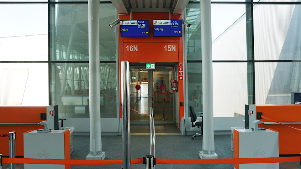 ワルシャワ・ショパン空港 13:30発 CA738便、使用機材はA330-200、シート配列は2-4-2、北京国際空港までの所要時間は時刻表では10時間10分です。