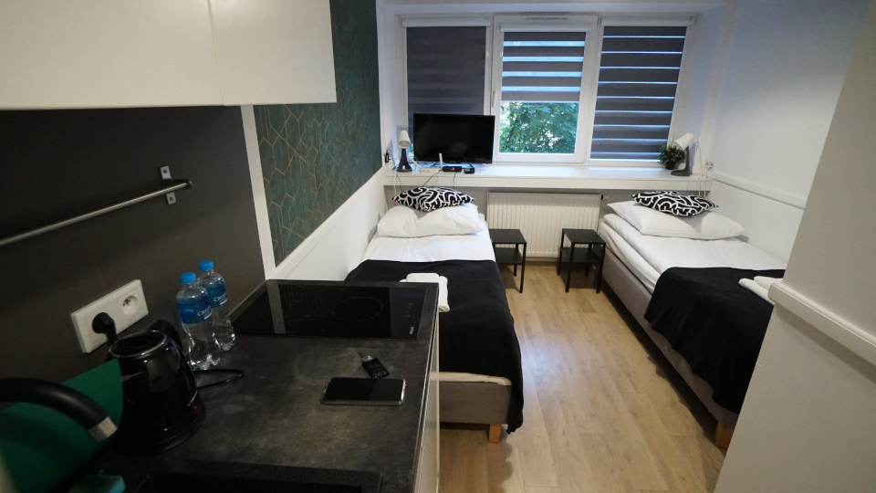 スーツケースをゴロゴロしながら、何とかホステル「Great Polonia Kraków City Center」まで到着、数年前まではホテルだった建物で、ホステルになってからは有人のレセプションがなくなった様子、門扉の開閉もコード入力です、ただホステルから送られたコードは少しクイズのようで、勘違いしてると開きません。