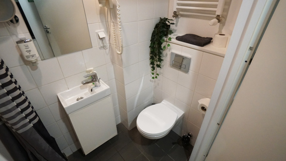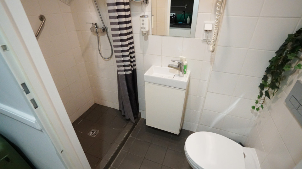 シャワーのスペースは狭いですが、シャワーカーテンありました。