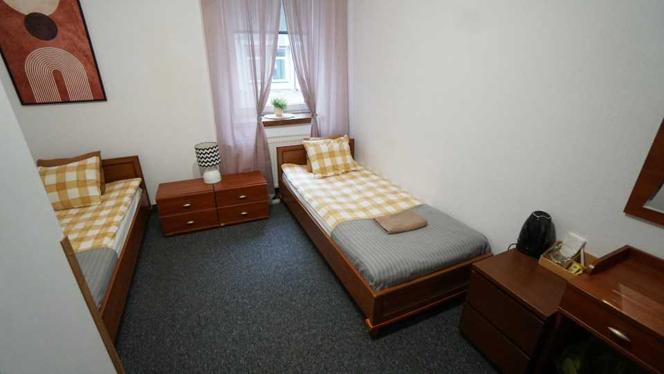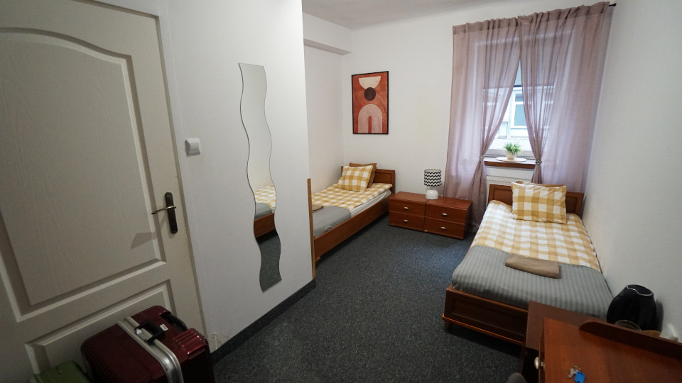 本当なら昨日の午後2時、遅くとも午後3時には入室できた「ホステルココ」の部屋、一日遅れの早朝5時になりました、入り口のドア側から、左のドアはバスルーム。