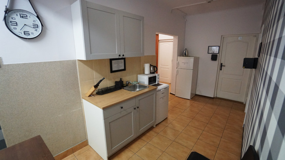 椅子の脚しか写ってませんが左手に狭いカウンターテーブル、掃除が行き届いているというか、あまり利用されていないというか、写真を撮っていたのは朝の7時を過ぎていましたが、人の気配を感じません。