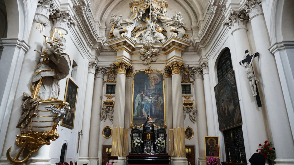「聖十字架教会」18 世紀に建てられた教会、フレデリック・ショパンの心臓を納めた壺が柱に収められているそうです、何かすごいですけど。