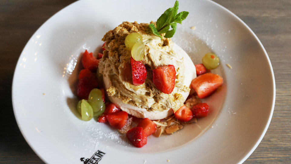 お願いしたのは、メレンゲ、ピスタチオクリーム&ナッツ、イチゴとベリー、ブドウかな?盛り付けがちょいと雑です。