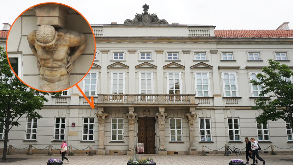 「ワルシャワ大学博物館」入り口左右の、屋根を支える四人の柱の像がなかなか素敵です。