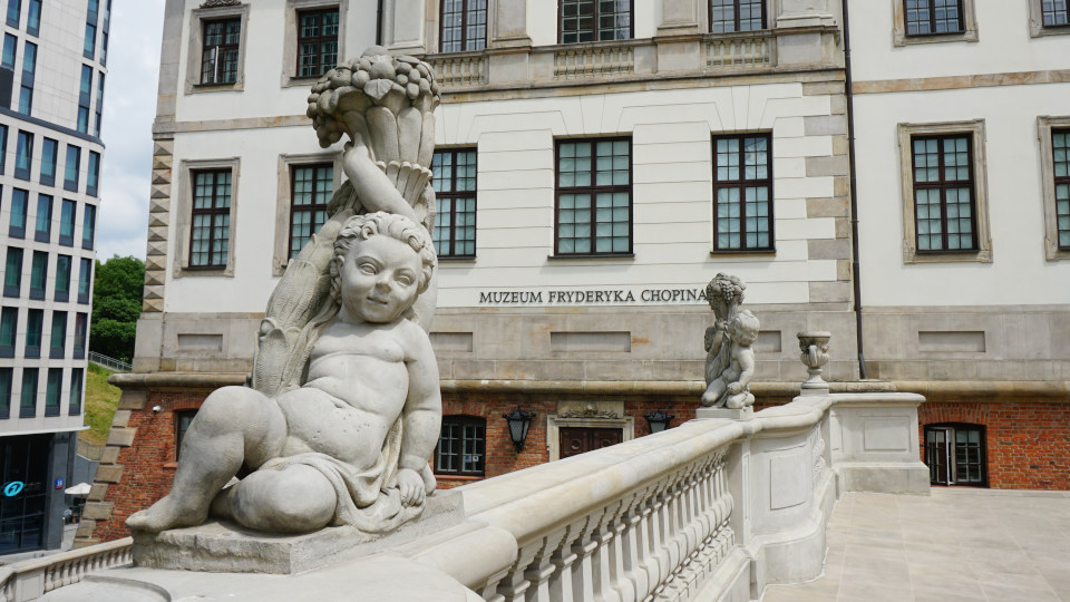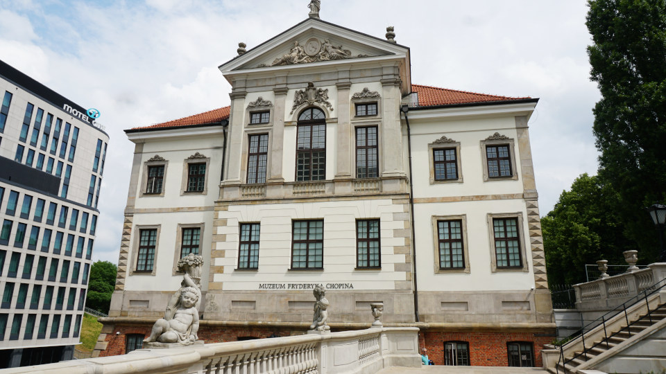 「フレデリック・ショパン博物館」レンガ造りの基礎部分に白い建物。