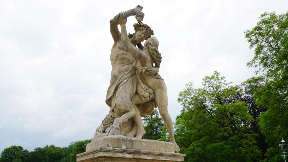 建物の正面手前に四体ほど彫像がありましたが、噴水を挟む二体の彫像が意味ありげでした。