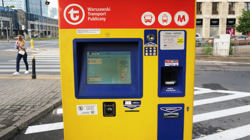 「Pl. Unii Lubelskiej 05」電停から4番トラムに乗って、ミルクバーへ向かいます、トラム内の券売機。
