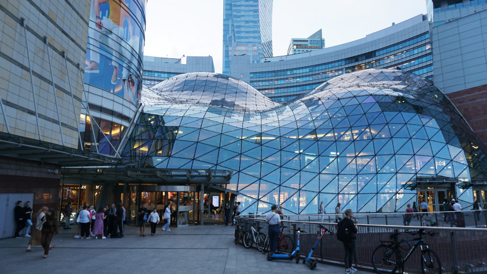 ショッピングモール「ズウォテ タラスィ」の屋根は独特の形状です。