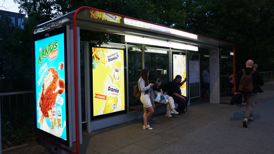 ホステルへ戻る足で、明日空港まで乗車する「Plac Starynkiewicza 02」バス停で、実際の時刻表を確かめます、時間は9時近くになっていましたが、まだまだバスの利用者は多いようです。