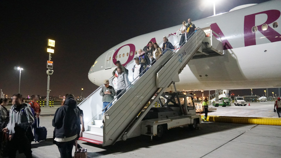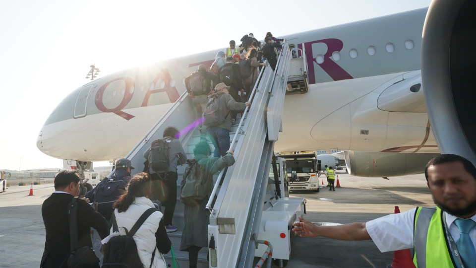 連絡バスから沖止めのカタール航空機へ、外は夜が明けてまた少し暑くなったようです。
