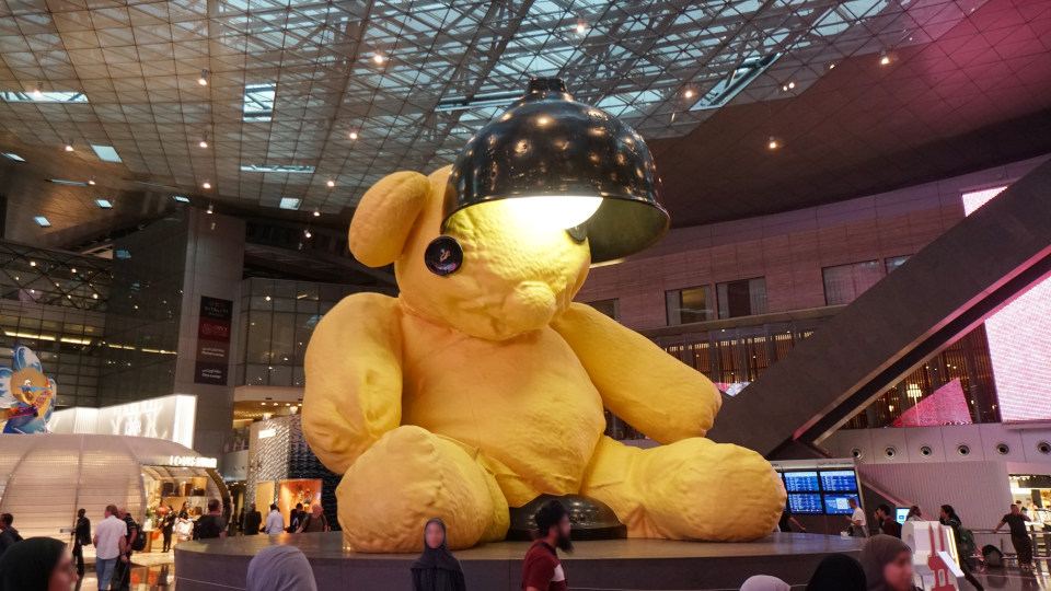 ハマド国際空港と言えばターミナルの中央にある、この「ランプベア」待ち合わせの大きな目印です、乗り継ぎ便の出発までしばらくフリータイムになります。