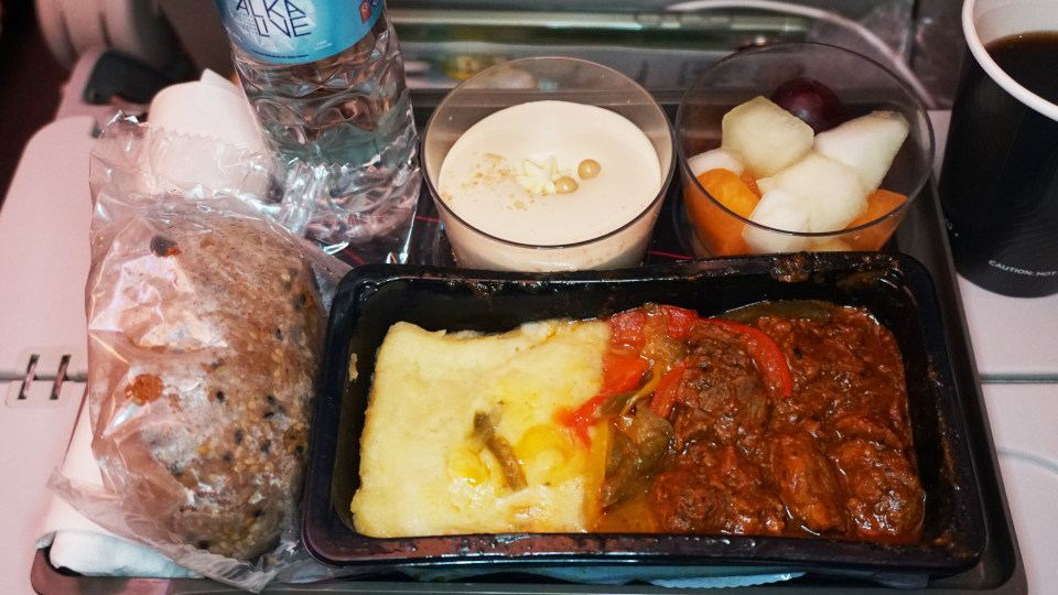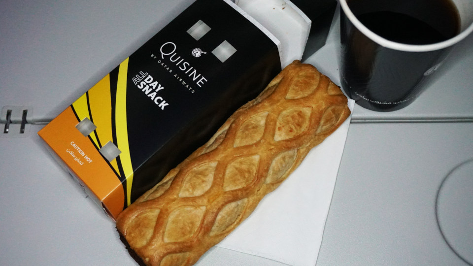ドーハ、ハマド国際空港着陸前に、二回目の機内食サービスが始まります。