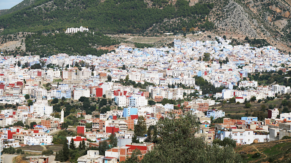 シャウエンの街全体を見渡せるところで最後のお写真タイム、こうしてみると全体が青い訳ではないんです、どちらかと言うと全体的には白っぽい。