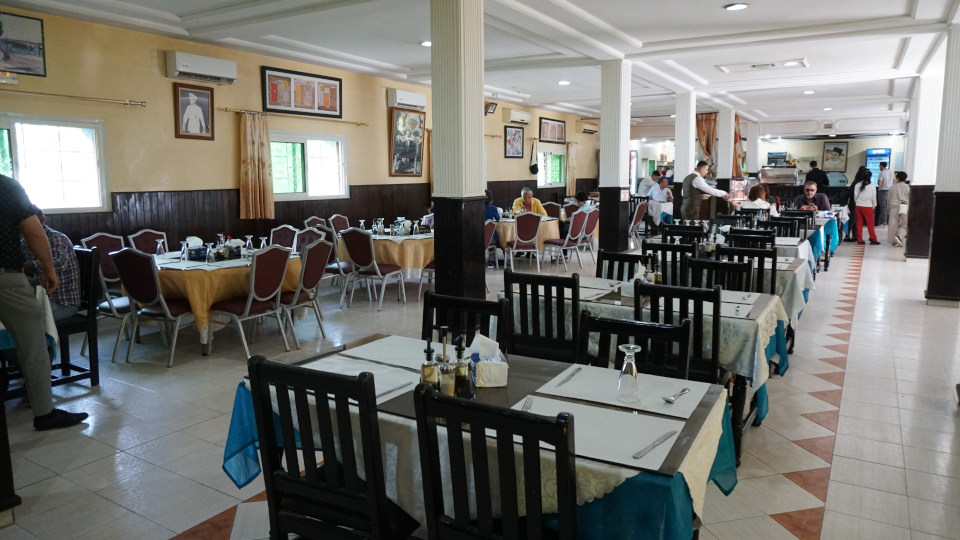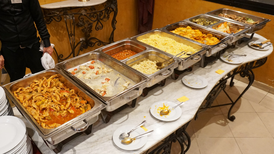 午後7時からホテルでビュッフェスタイルの夕食。