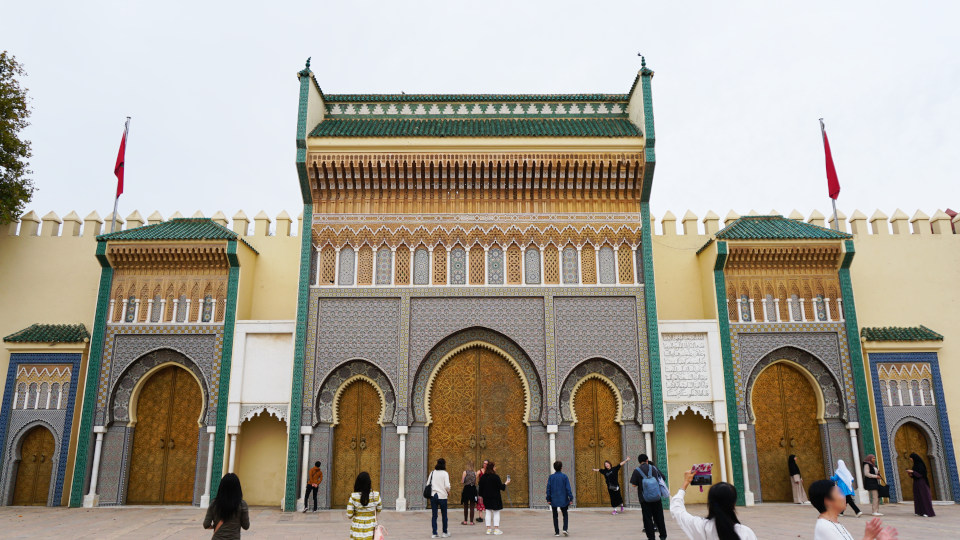 バスを降りて「フェズ」の「王宮の門」へ、扉には細かな装飾が施されています。
