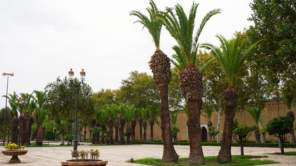 右手の城壁前にはヤシの並木が続きます。