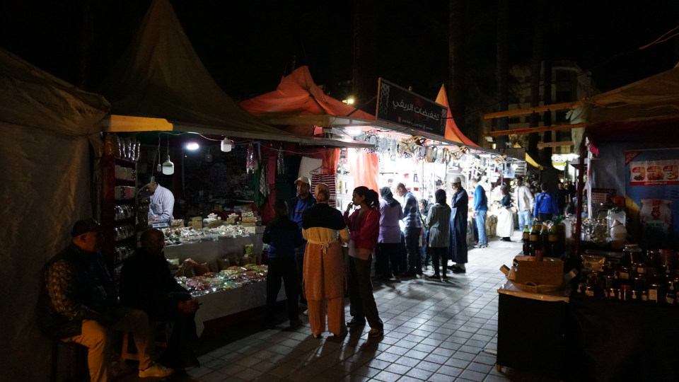 夕食後ホテル近く、北方向にある公園にナイトマーケットがあるというので徘徊に、ただ奥の雑貨を扱う店はかなり明るいのですが、まわりのお店にはほとんど照明がなく。