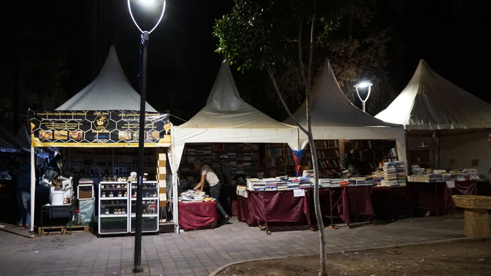 古本屋?サンと思われるところは、自家照明なし、街灯が頼りの商売です。