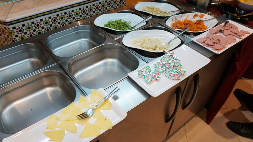 こちらは夕食に比べるとかなり品数が落ちます、奥にスープのジャーがあります。
