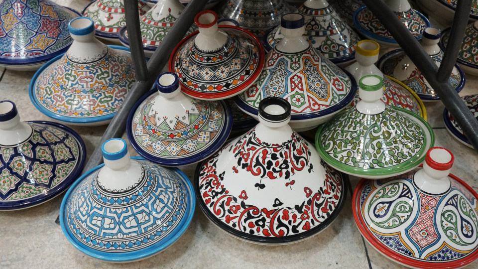 さて、店内にはカラフルな「タジン鍋」が並びます、絵柄も様々。