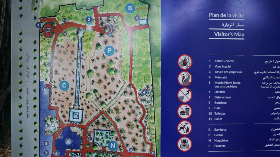 フランス人画家のジャック・マジョレルが1920年代に完成した庭園で、1980年代にイヴ・サンローランによって買い取られ、修復を行い、今ではマラケシュの観光名所として知られています、「マジョレル庭園」に隣接して北側には「イヴ・サンローラン美術館」もあります。