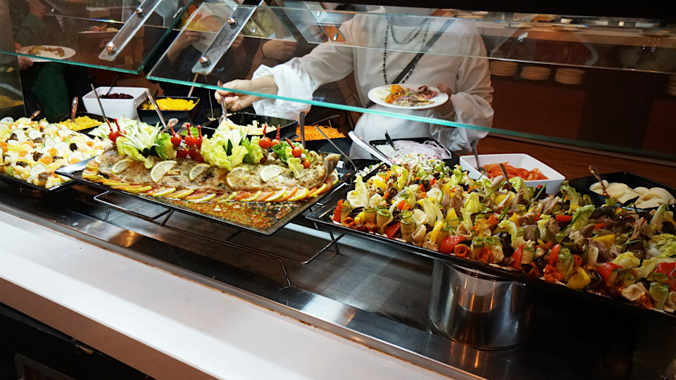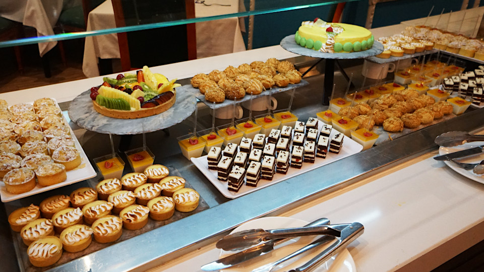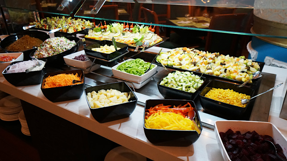 1階のダイニングで7時半からの夕食です、さすが5っ星、品ぞろえがすごい。