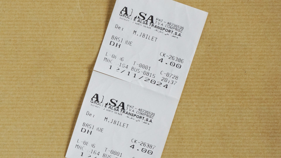 検索では「L6」と「L20 」のバスが来るはずで、「L6」が「フナ広場」まで行けるバスなのですが、とにかくやって来たバスに乗ります、運賃は直接運転手さんに払います、レシート状のチケットを渡されました、運賃は4dhm。