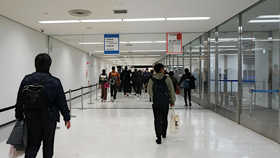 カタール航空機は「成田国際空港」第2ターミナルに到着、パスポートコントロールへ向かいます、この辺で午後6時を過ぎています。