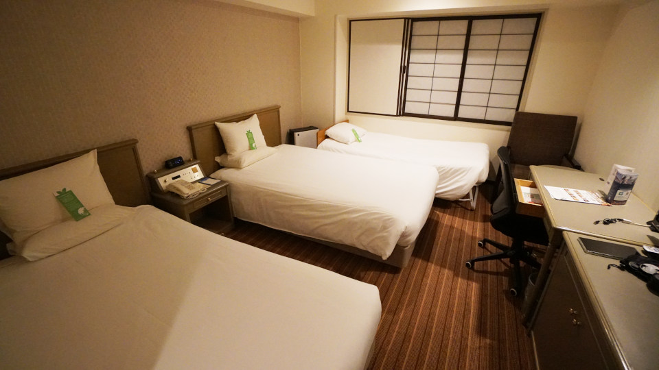今回のツアーでは最終日に新千歳空港までのアクセスは無理なので、成田で後泊することに、ホテルのシャトルバスを利用して「インターナショナルガーデンホテル成田」へ向かいます、成田で後泊をとるのも久々、エキストラベットが入ったお部屋の様子。