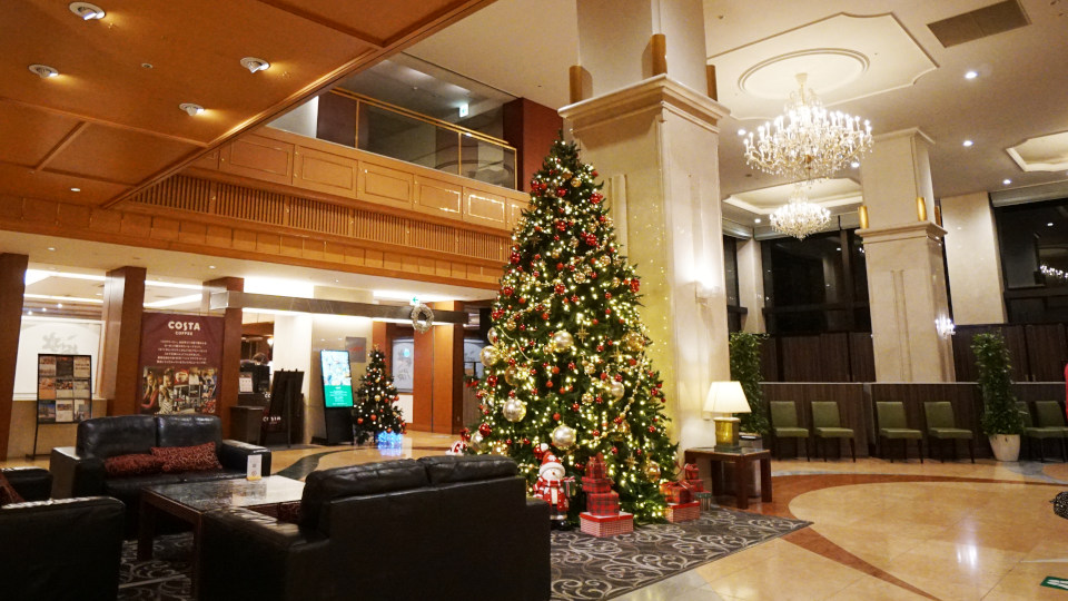 ロビーはすでにクリスマスの装い、かなり立派なクリスマスツリーが飾られていました。