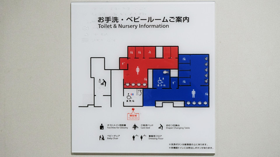 トイレ前に利用案内ありました、外から利用状況が一目でわかるシステム。