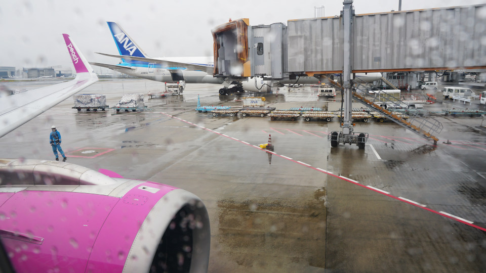 この日はあいにくの雨でしたが、成田国際空港10:35発 ピーチMM567便で新千歳空港へ向かいます。